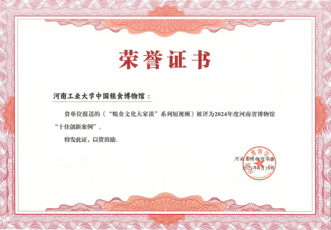2:2025年4月,河南工业大学中国粮食博物馆策划的“粮食文化大家谈”系列视频,因其深入探讨粮食文化内涵、价值及在现代社会中的传承与发展,成功入选2024年度河南省博物馆“十佳创新案例”,“学习强国”和“河南日报”客户端均对此进行了宣传报道。